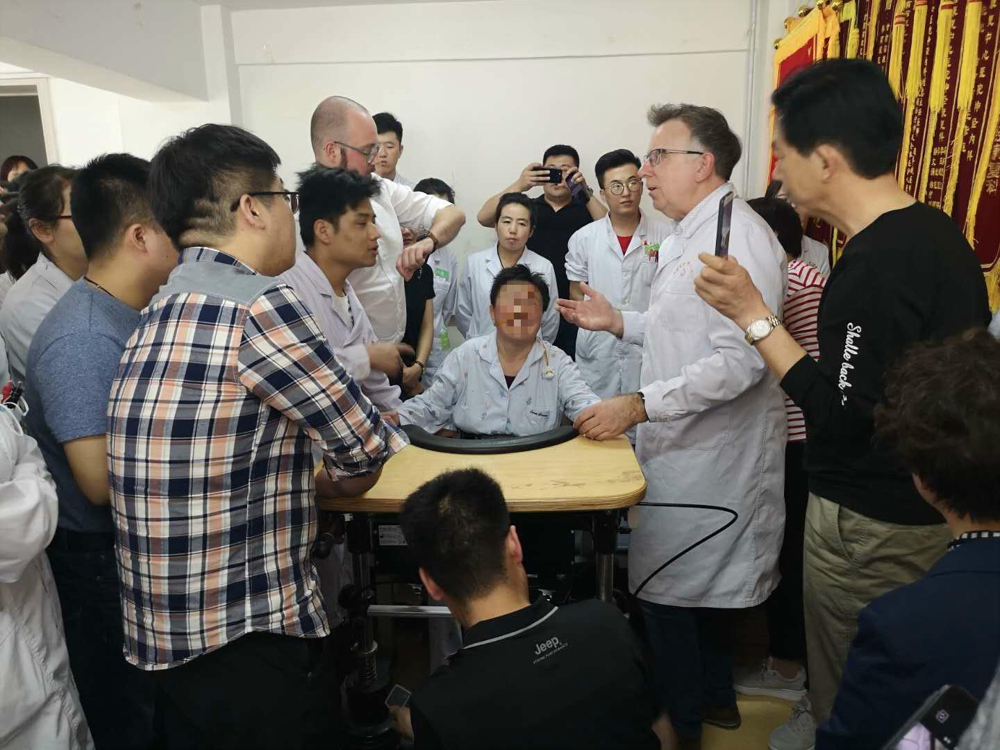 4月24日,省康复中心医院神经康复科开展《运动障碍患者的模块化康复训练》学术交流活动,活动特邀德国北威州杜塞尔多夫市圣玛莉提丝康复医院运动疗法科主任、德国神经康复协会成员、欧洲物理医学研究院成员、德中康复福祉协会(GS—RWS)专家组成员、“模块化运动康复”理念提出者Helmut Krause教授,围绕运动治疗理念、运动功能模块化分级、运动再学习原则、坐-站-走康复训练、各模块治疗方案及设备配置,依据病人不同的运动能力,将不同康复阶段的病人分为7个模块,在每个模块均依据现阶段的运动情况,实施针对性的运动康复治疗方案,在达到现阶段治疗目标后,再向下一模块过渡,最终实现病人的自主运动能力等方面作了学术交流。