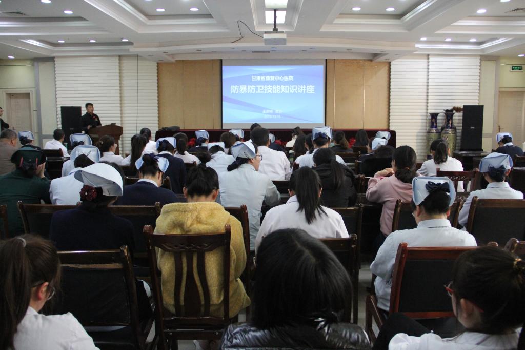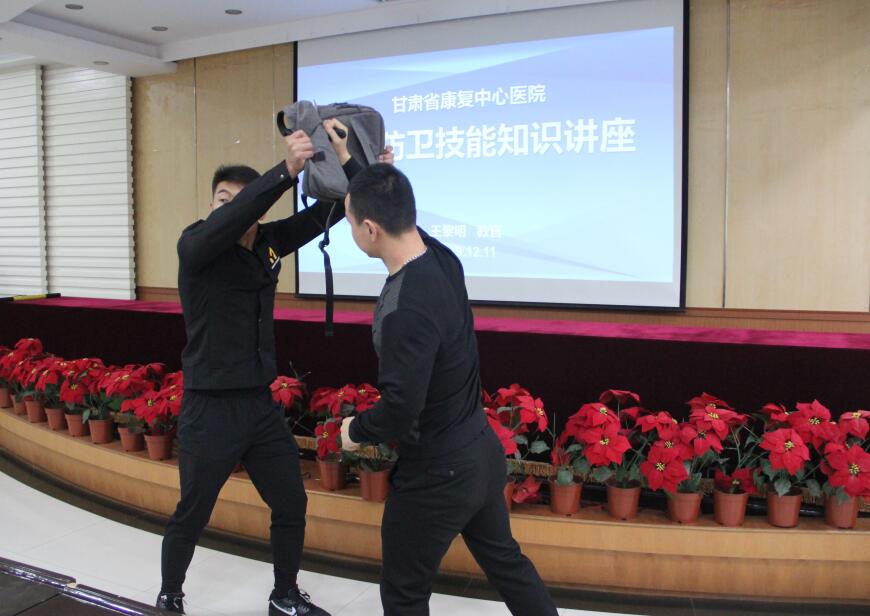 为进一步提高医院职工的安全防范意识和自我保护能力,使广大职工了解暴力事件的发生状态和应对措施,12月11日下午,省康复中心医院保卫部门邀请安全防卫教官举办了防暴防卫技能知识专题讲座。全院职工百余人参加了讲座。