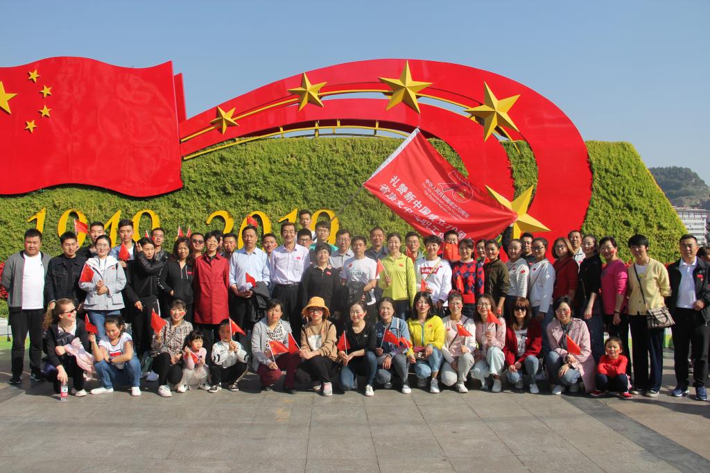 清晨,当第一缕阳光映照在美丽的黄河之滨,涟漪的黄河水荡漾微波徐徐东流,映射着兰州这座美丽城市的朝气蓬勃。早上9点,医院广大职工聚集在兰州水车博览园,手拿着国旗,个个神采奕奕。有的带着伴侣,有的带着小孩,在金色的阳光中勾勒出人与自然的和谐美景。随着一声哨响,医院党政班子和职工及家属喜气洋洋,活力四射,合唱《我和我的祖国》,迈步向前行进。一路上,大家有说有笑,有或合影留念的,有或随手即拍金秋花团锦簇的,有或自拍休闲景色的,处处洋溢着对祖国母亲的祝福。