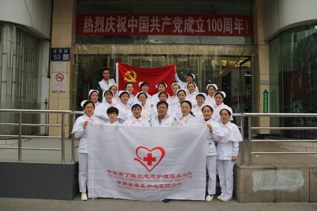 2019年,由甘肃省护理学会主办的中国南丁格尔志愿护理服务总队甘肃省18支分队在兰州成立。甘肃省18支分队分别是全国总队的第427至444支分队,省康复中心医院护理分队是中国南丁格尔志愿护理服务总队第437支分队。省康复中心医院护理分队加入中国南丁格尔志愿护理服务总队,将充分调动团队潜能,发挥护理专业的优势,践行红十字主义精神和南丁格尔精神,转变服务理念、拓宽工作思路,把医院护理工作和社会志愿服务紧密结合起来,为人民群众提供独具特色的志愿服务。