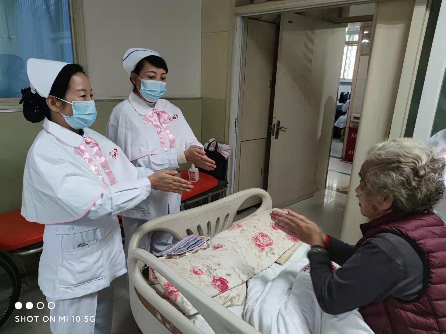 10月14日下午,为践行“我为群众办实事”初心使命,替患者分忧愁、解难题,鼓舞护理人员工作干劲,助力医院三甲复审冲刺,由医院医务党支部联合南丁格尔志愿护理服务分队共同开展“生命至上,关爱为怀”服务活动。此次活动遵循中国红十字运动基本原则,秉承南丁格尔誓言,弘扬南丁格尔奉献精神,为群众办实事的宗旨,为医院患者进行疫情防控知识宣教及康复护理健康指导,对手卫生、正确佩戴口罩、跌倒坠床防范、体位摆放、ADL指导等内容进行了耐心细致的讲解与指导,受到了患者与家属的一直好评。