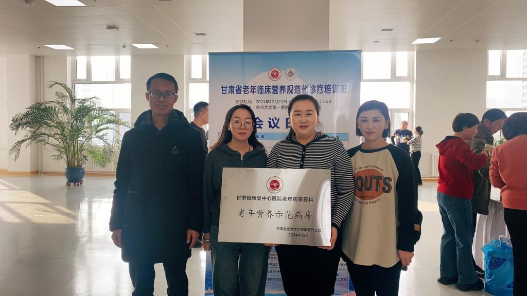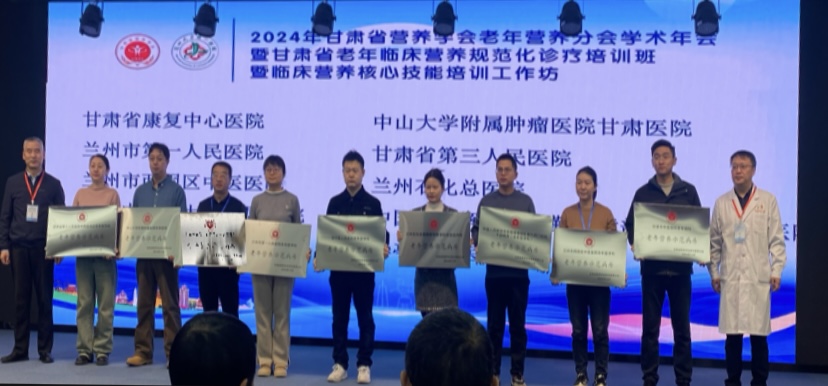 12月21日,2024年甘肃省营养学会老年营养分会学术年会暨甘肃省老年临床营养规范化诊疗培训班暨临床营养核心技能培训工作坊在兰州大学第一医院召开。省康复中心医院老年病康复科成功获批“甘肃省老年营养示范病房”,成为全省首批授牌的单位之一。