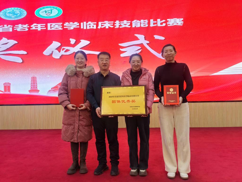 为充分调动老年医学医护人员学习积极性,鼓励刻苦钻研业务,提升服务意识,带动学科发展,形成稳定的老年医学科医护团队,为全省老年人的健康保驾护航,12月21日至22日,2024年甘肃省老年医学临床技能比赛在兰州顺利举办,此次大赛共有25支三级医院代表队、29支基层医院代表队参加,162名选手参赛,设团体奖14名。经过激烈的角逐,由省康复中心医院老年病康复科董雯丽主治医师、苏海霞康复医师、汪晓丽护师组成的参赛团队荣获三级医院团体优秀奖,董雯丽荣获个人优秀奖,汪晓丽荣获个人三等奖。